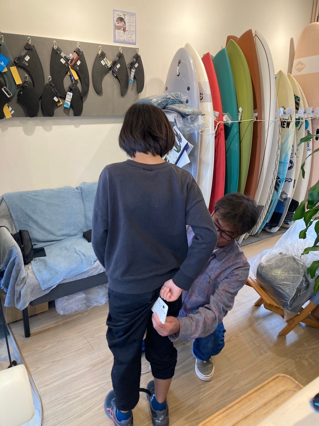 ROAMER辻堂ローカルブランドのキッズ用ウエットスーツが仕上がって試着した写真をパパさんより頂きました。